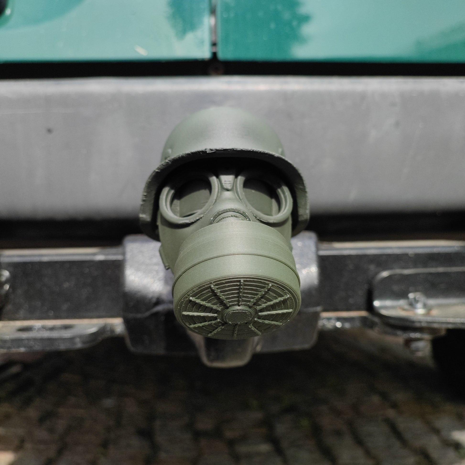 AHK Stahlhelm mit Gasmaske Grün (Anhänger-Kupplung Abdeckung) 3D-Druck