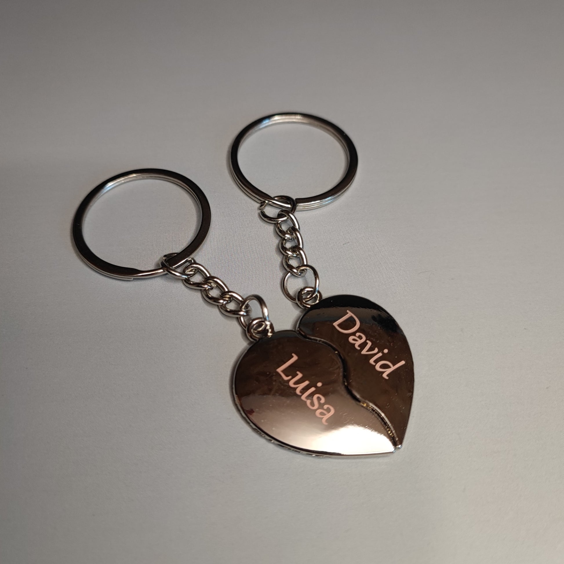 Dieser elegante und bedeutungsvolle Schlüsselanhänger in Herzform ist das perfekte Geschenk für Paare, beste Freunde oder besondere Menschen in Ihrem Leben. Er besteht aus zwei passgenauen Hälften, die individuell graviert werden können – ideal als Symbol für Zusammengehörigkeit und Liebe.