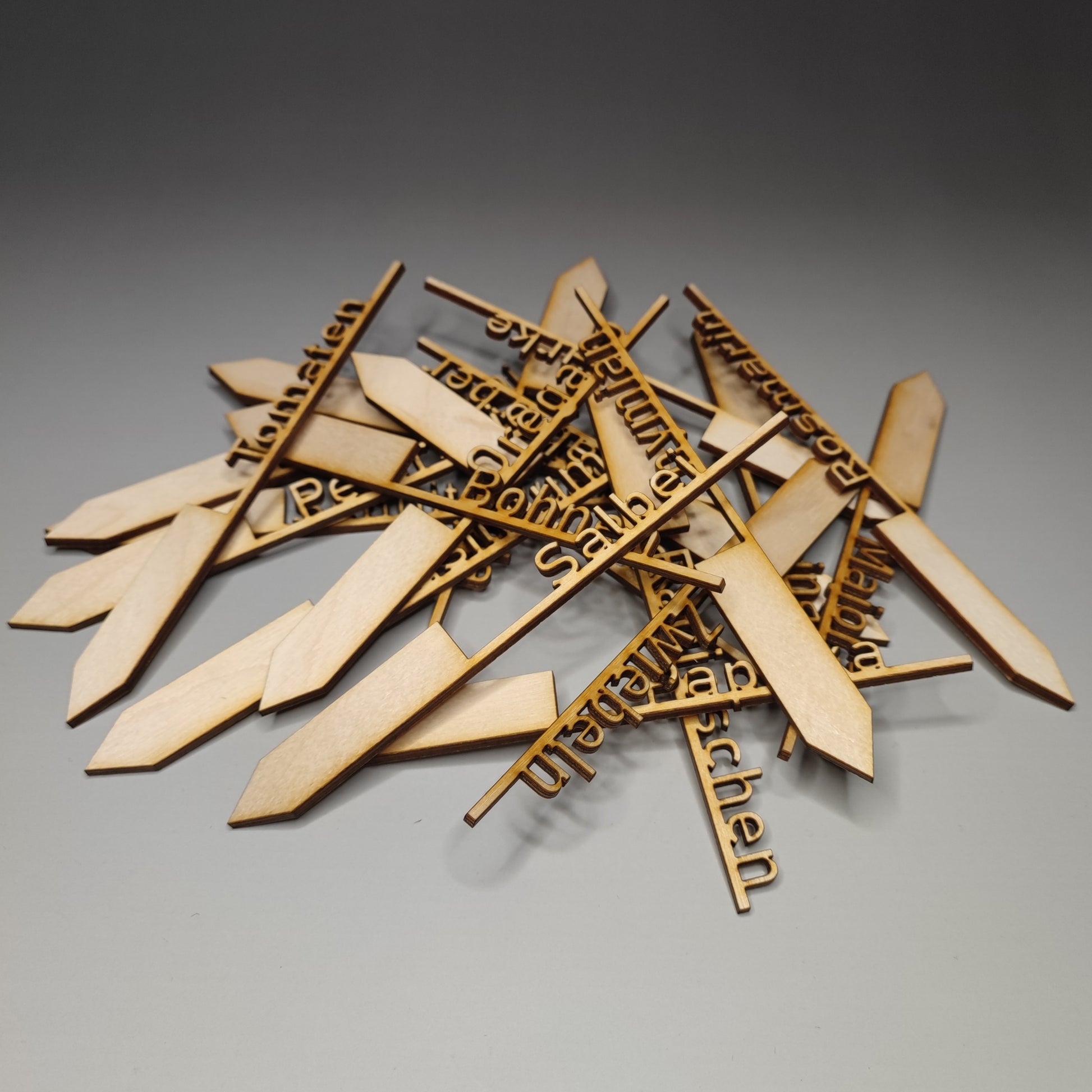 Diese Pflanzenschilder sind aus 3mm Birkenholz und somit kompostierbar.