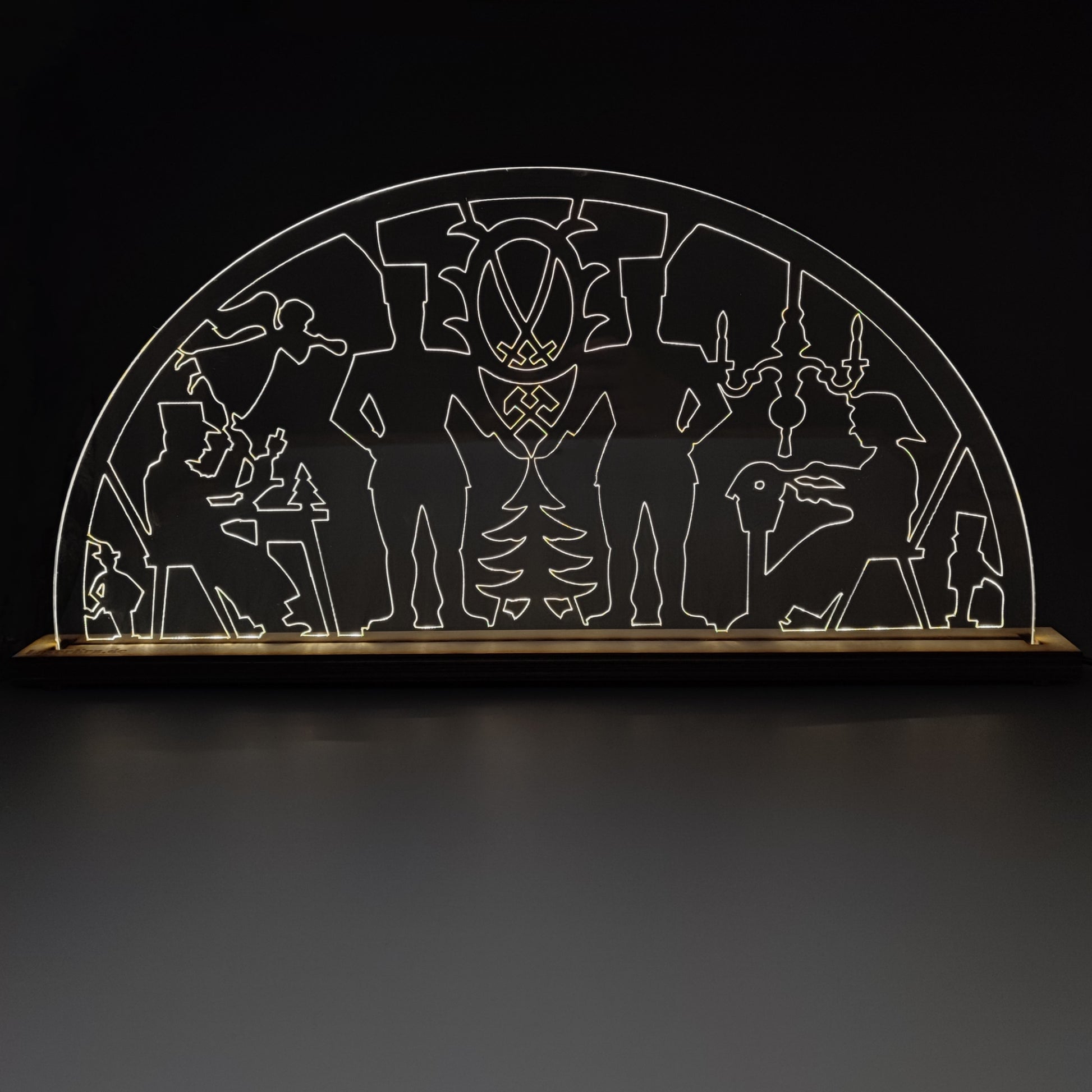 - Material: Plexiglas (auf beiden Seiten Schutzfolie) und Birkenholz
