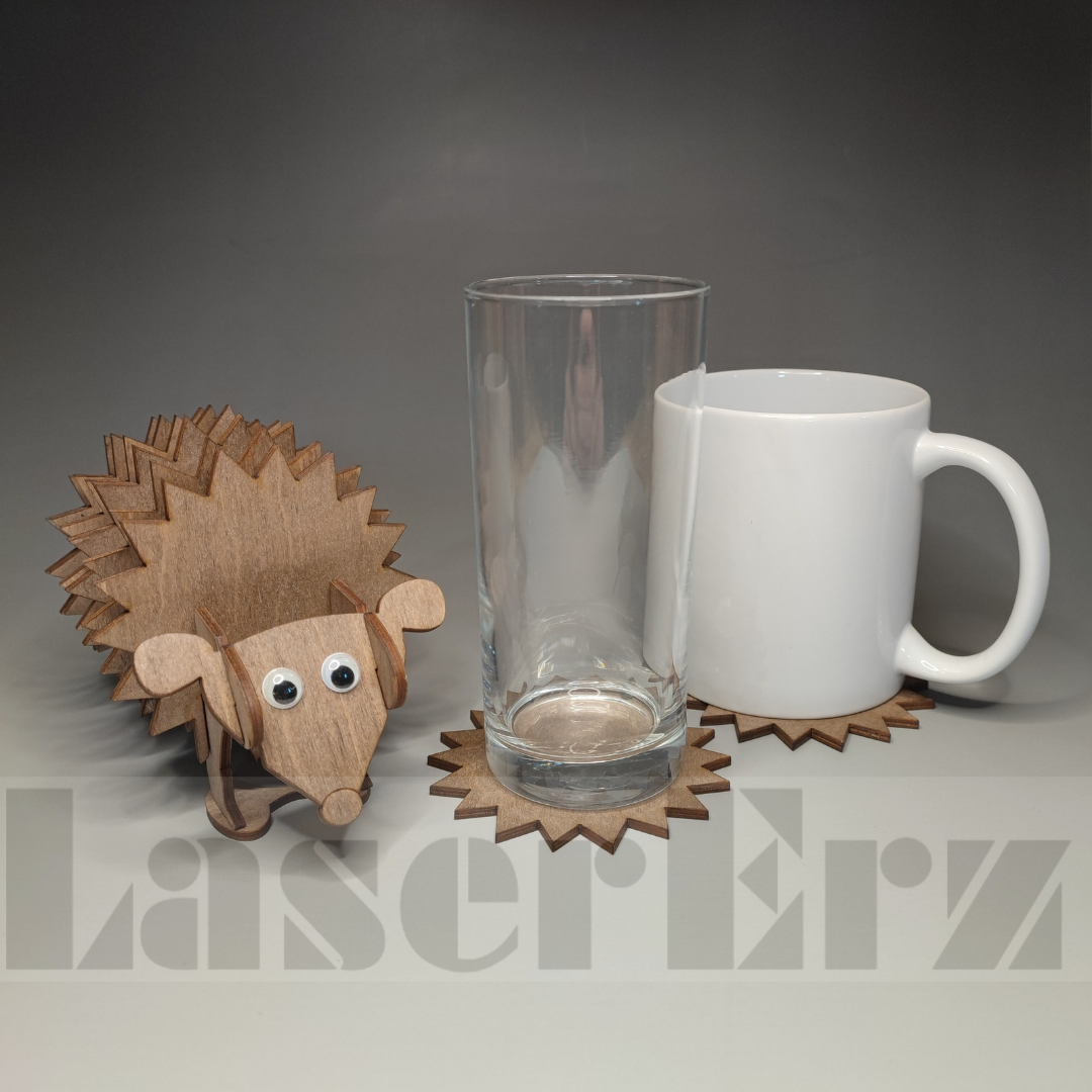 Untersetzer aus Holz für Getränke in Igel Form /Bier Wein Glas Tee Kaffee Tasse Untersetzer Halter